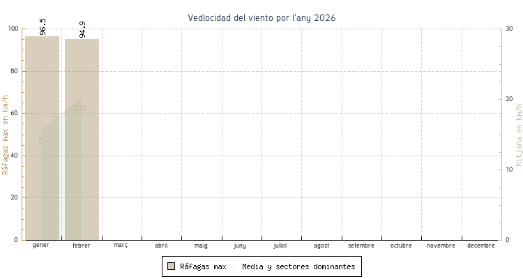 | febrer | 9.3 °C | 11.4 °C | 18.5 °C | 15.0 °C | 13.2 °C | 20.2 km/h | 94.9 km/h | OSO |
