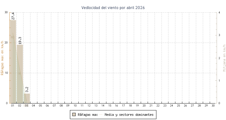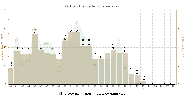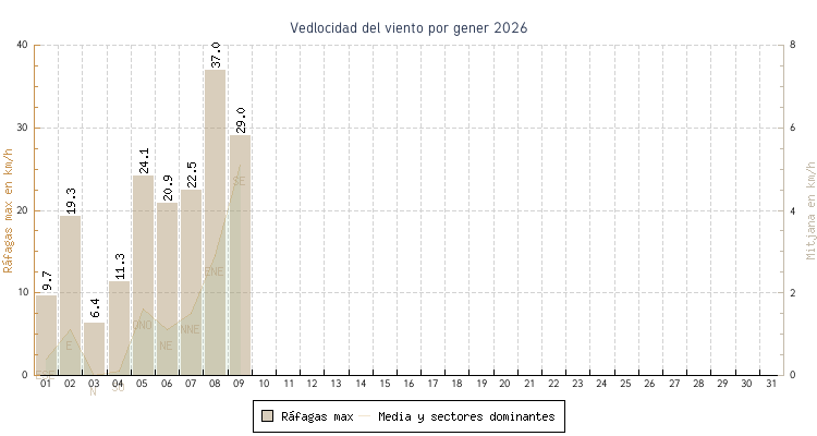 | min | max | mitjana | Velocitat (rafages) | Sector | ||