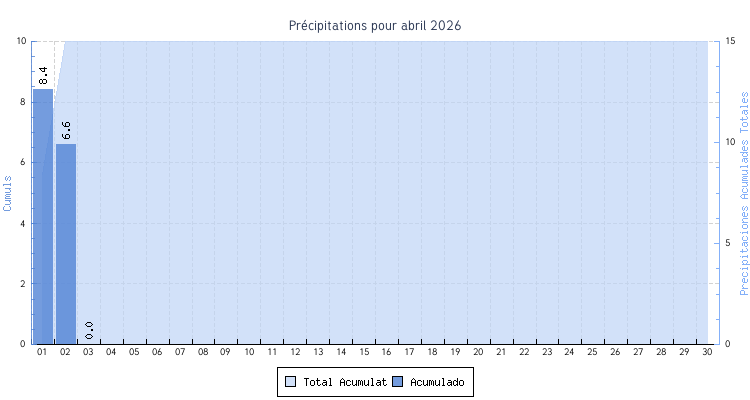 | Total | 7.6 °C | 15.8 °C | 11.1 °C | 1.6 km/h (27.4 km/h) | 15 mm | |