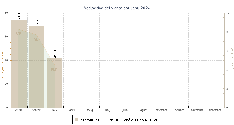 | gener | 7.9 °C | 11.6 °C | 17.9 °C | 15.3 °C | 13.3 °C | 8.3 km/h | 74.0 km/h | ESE |