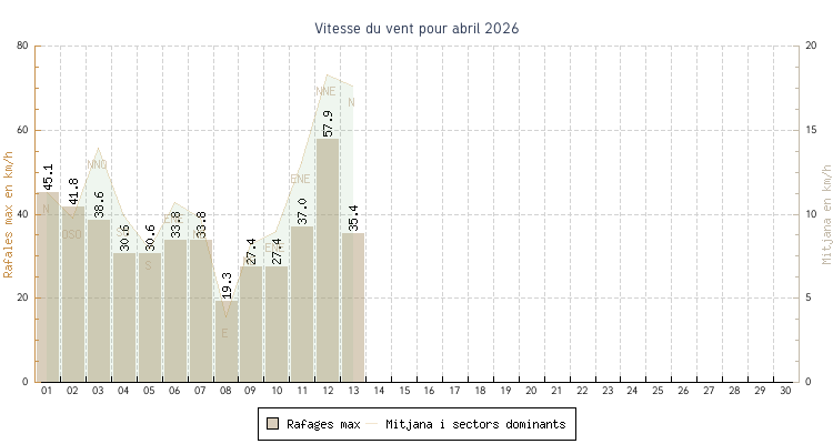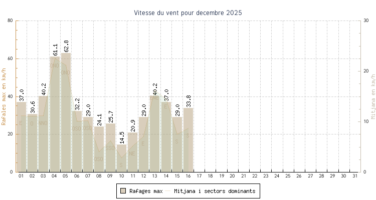 | min | max | mitjana | Velocitat (rafages) | Sector | ||