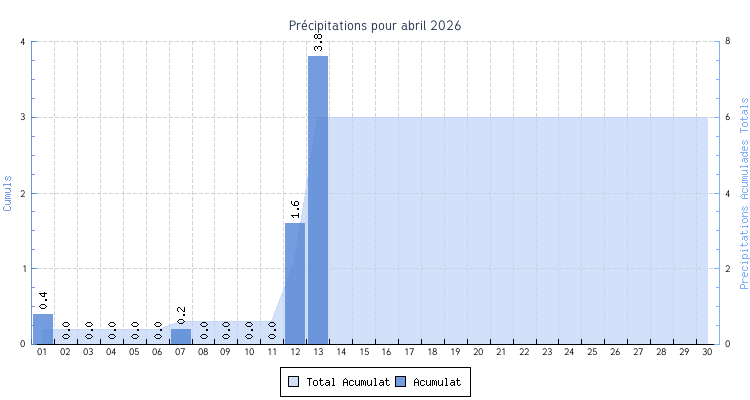 | Total | 9.7 °C | 24.3 °C | 15.3 °C | 11 km/h (57.9 km/h) | 3.8 mm | |