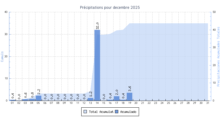 | 01 | 5.8 °C | 12.8 °C | 8.8 °C | 4.3 km/h (32.2 km/h) | S |