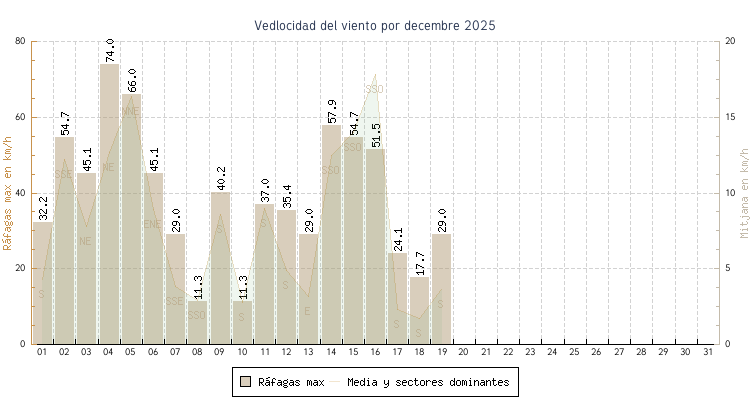 | min | max | mitjana | Velocitat (rafages) | Sector | ||