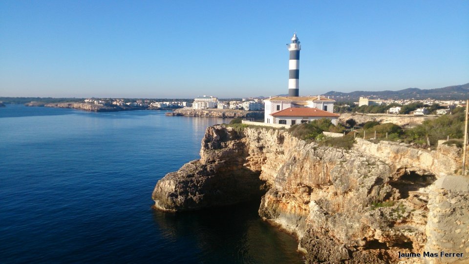 El Far de Portoocolom, la mar totalment encalmada, (calmes de gener dia 09-01-2015)