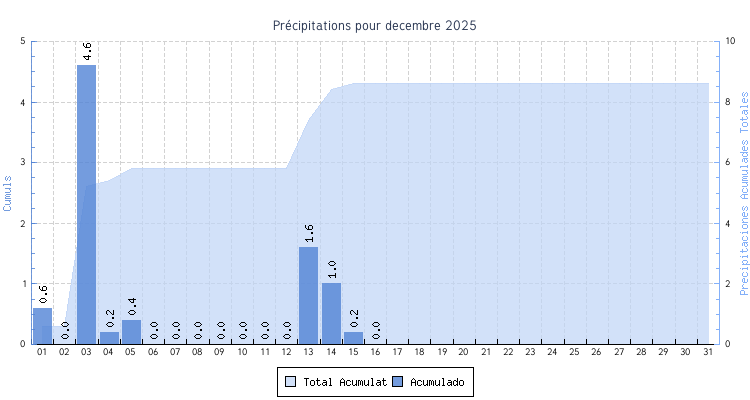 | Total | 5.4 °C | 19.8 °C | 11.8 °C | 6.8 km/h (69.2 km/h) | 8.6 mm | |
