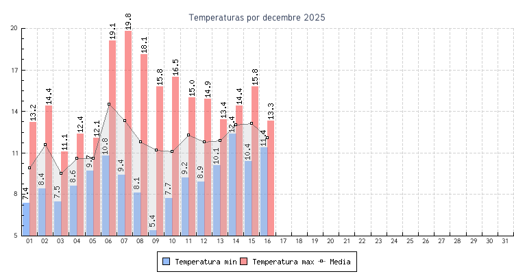 | 06 | 10.8 °C | 19.1 °C | 14.5 °C | 7.9 km/h (37.0 km/h) | SSO |