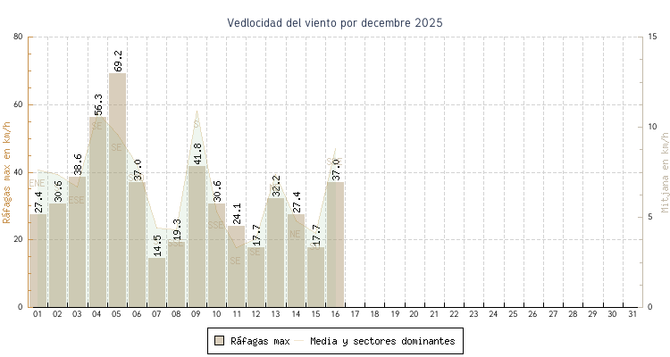 | min | max | mitjana | Velocitat (rafages) | Sector | ||