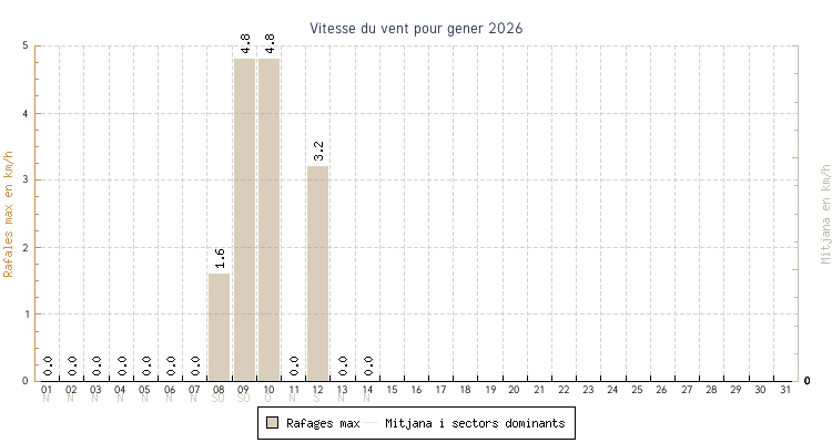 | min | max | mitjana | Velocitat (rafages) | Sector | ||