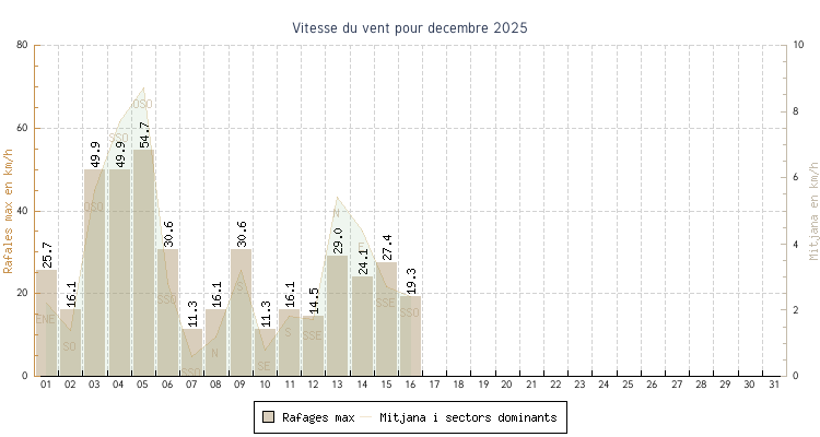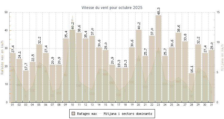 | min | max | mitjana | Velocitat (rafages) | Sector | ||