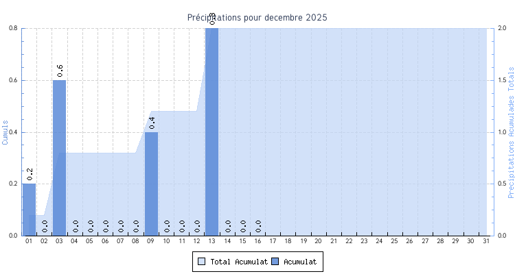 | Total | 8.2 °C | 21.3 °C | 13.3 °C | 3.3 km/h (54.7 km/h) | 2 mm | |