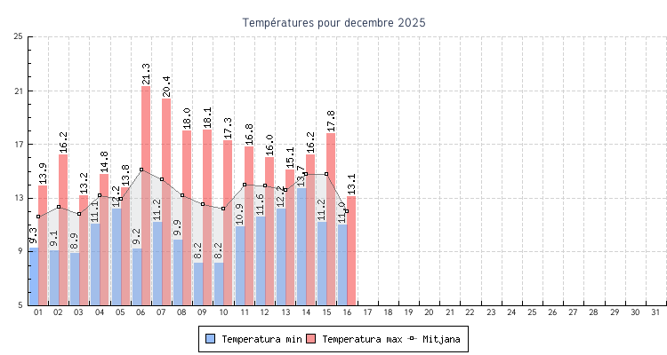| 06 | 9.2 °C | 21.3 °C | 15.1 °C | 2.8 km/h (30.6 km/h) | SSO |