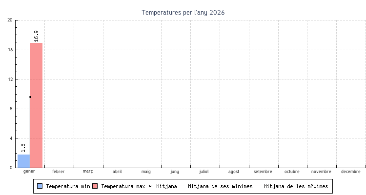 | Mes | Temperatures min | Temperatures max | Mitjana mensual |
