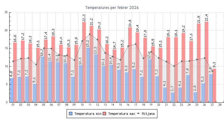 | 02 | 7.1 °C | 17.2 °C | 12.1 °C | 9.9 km/h (49.9 km/h) | SSO |