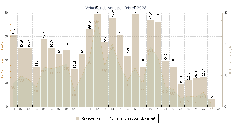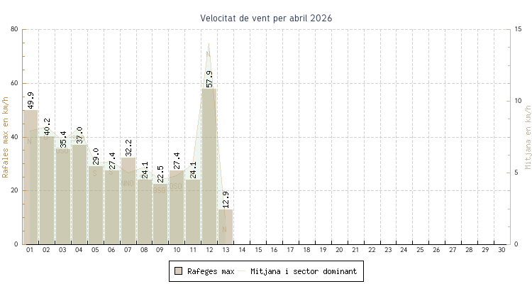 | min | max | mitjana | Velocitat (rafages) | Sector | ||
