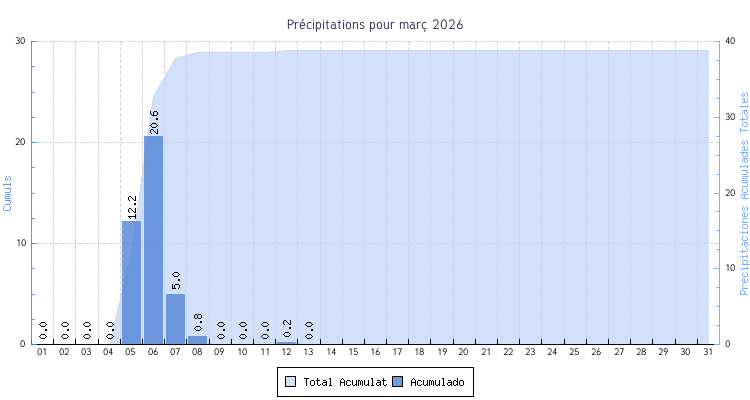 | Total | 9.4 °C | 20.1 °C | 13.8 °C | 1 km/h (25.7 km/h) | 38.8 mm | |