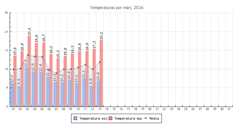 | 03 | 13.3 °C | 20.1 °C | 16.0 °C | 2.5 km/h (25.7 km/h) | NO |