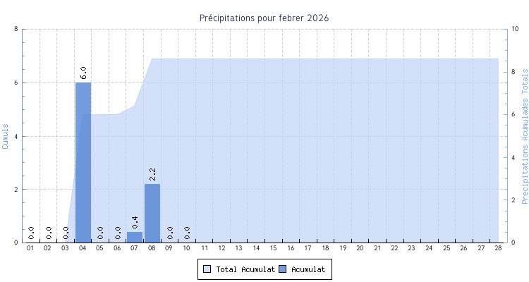 | Total | 8.7 °C | 16.8 °C | 12.5 °C | 0 km/h (0.0 km/h) | 8.6 mm | |