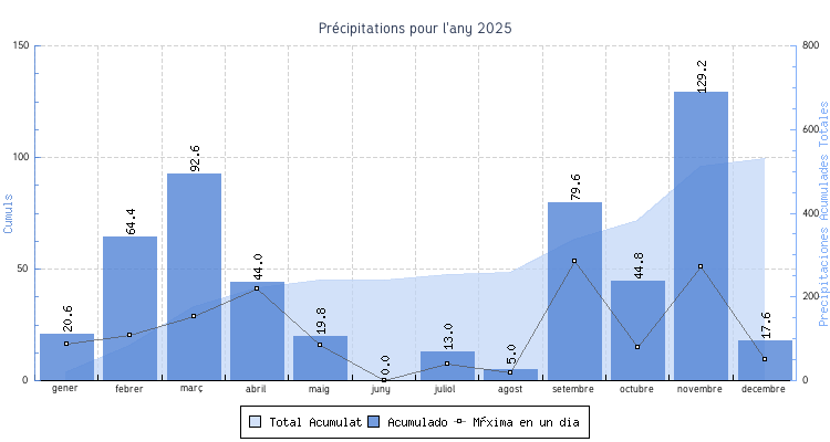 | decembre | 6.4 °C | 9.0 °C | 20.8 °C | 16.9 °C | 12.9 °C | 0.8 km/h | 46.7 km/h | NE |