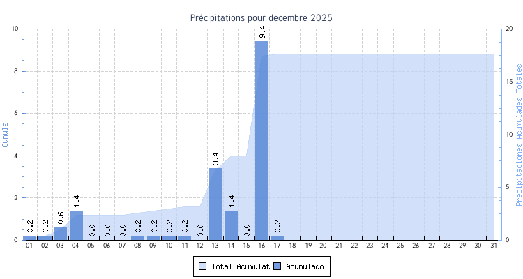 | 07 | 9.3 °C | 20.4 °C | 13.5 °C | 0.2 km/h (19.3 km/h) | S |