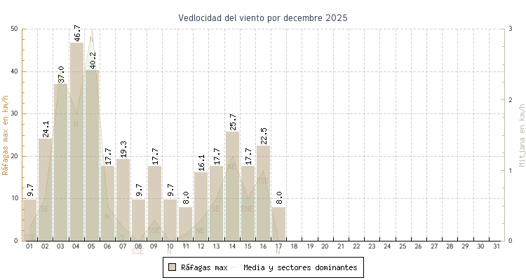 | min | max | mitjana | Velocitat (rafages) | Sector | ||
