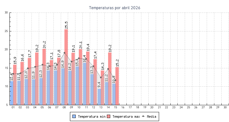 | 04 | 11.9 °C | 19.2 °C | 15.3 °C | 8.4 km/h (27.4 km/h) | SSO |