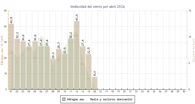 | 15 | 10.8 °C | 15.2 °C | 11.7 °C | 0.3 km/h (8.0 km/h) | SE |