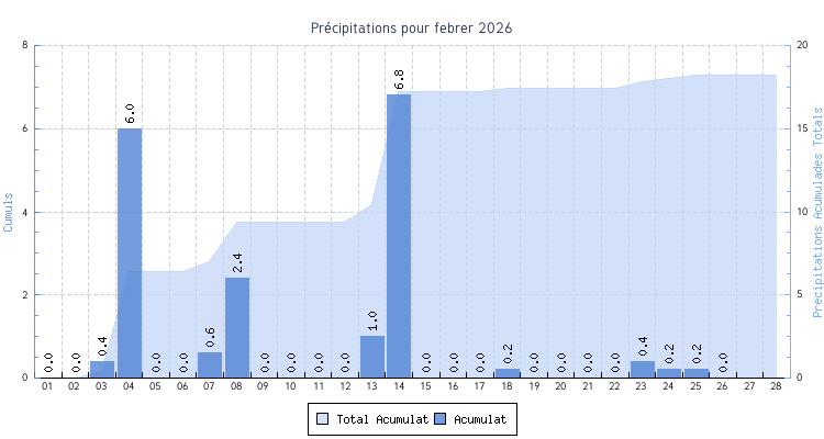 | Total | 7.8 °C | 22.4 °C | 13.6 °C | 8.8 km/h (66.0 km/h) | 18.2 mm | |