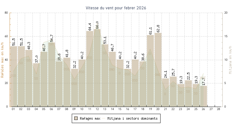 | min | max | mitjana | Velocitat (rafages) | Sector | ||