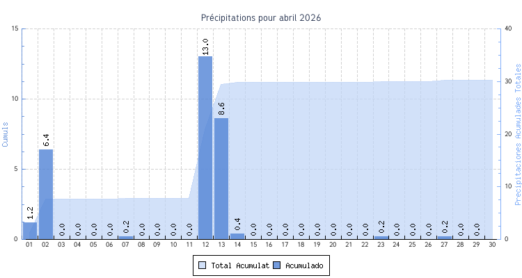 | Total | 6.2 °C | 25.6 °C | 16 °C | 10.3 km/h (82.1 km/h) | 30.2 mm | |