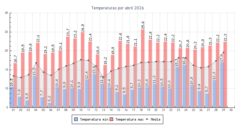 | 28 | 12.3 °C | 22.2 °C | 17.3 °C | 10.6 km/h (41.8 km/h) | N |