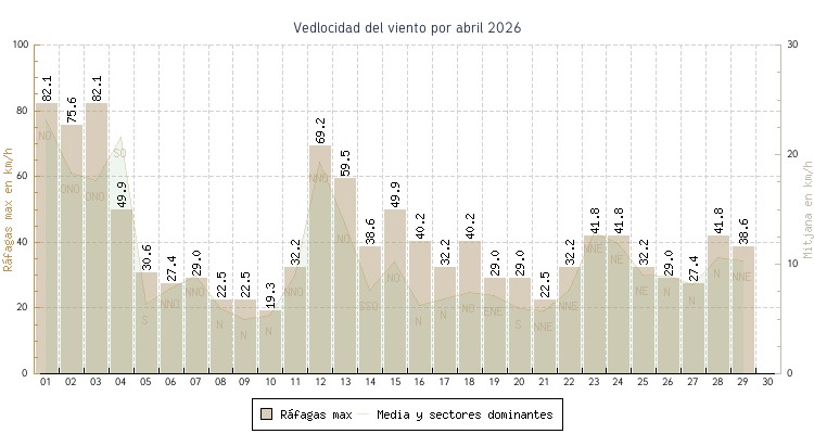 | min | max | mitjana | Velocitat (rafages) | Sector | ||