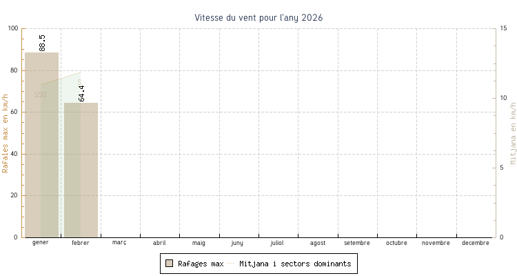 | gener | 0.6 °C | 7.8 °C | 19.5 °C | 15.8 °C | 11.7 °C | 11.0 km/h | 88.5 km/h | SSO |