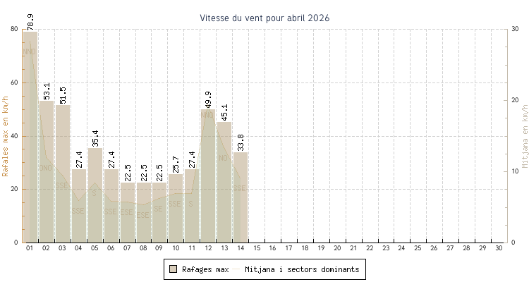 | min | max | mitjana | Velocitat (rafages) | Sector | ||