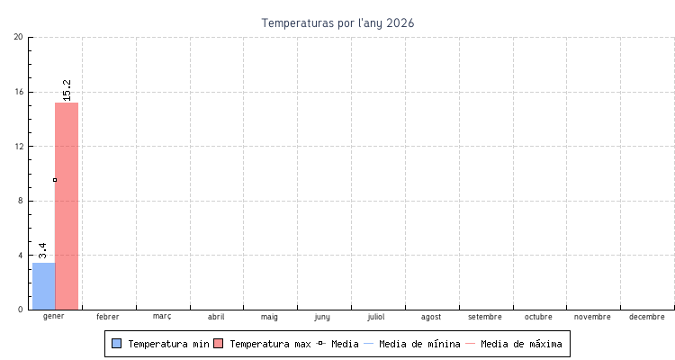 | Mes | Temperatures min | Temperatures max | Mitjana mensual |