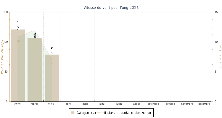 | gener | 3.6 °C | 8.3 °C | 16.5 °C | 13.0 °C | 10.6 °C | 10.9 km/h | 120.7 km/h | ONO |