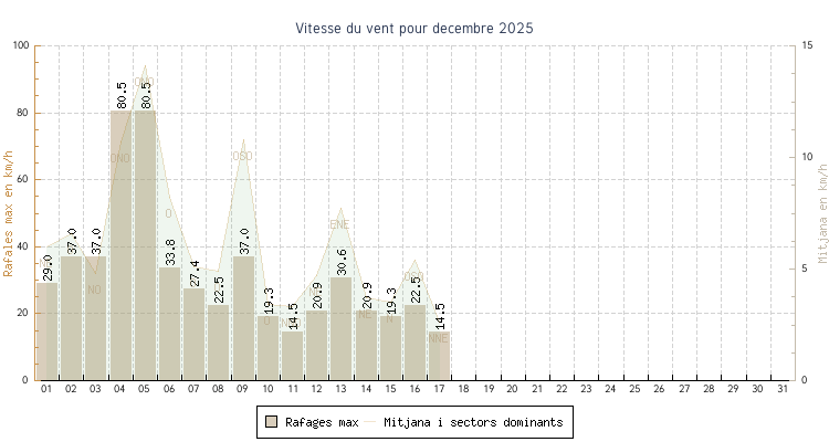 | min | max | mitjana | Velocitat (rafages) | Sector | ||