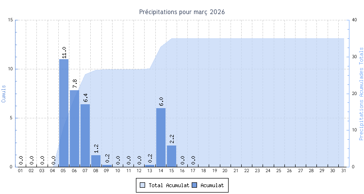 | Total | 5.1 °C | 19.7 °C | 12.5 °C | 4.6 km/h (48.3 km/h) | 35 mm | |