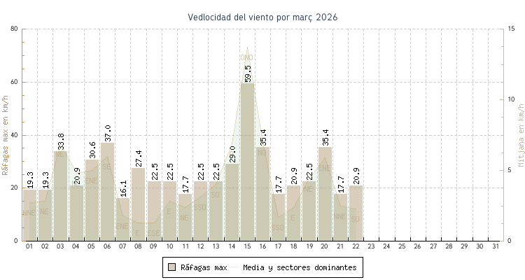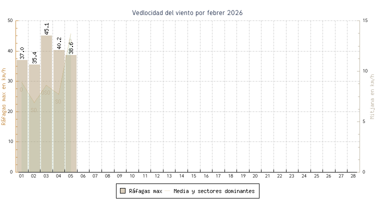 | min | max | mitjana | Velocitat (rafages) | Sector | ||
