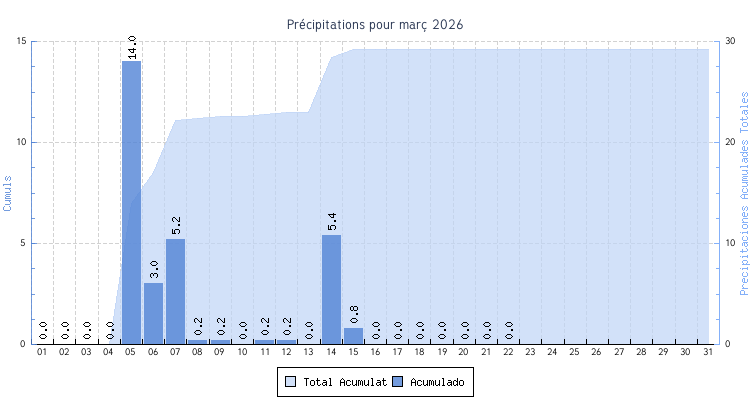| Total | 5.9 °C | 21.3 °C | 12.6 °C | 4.2 km/h (59.5 km/h) | 29.2 mm | |