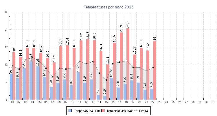 | 08 | 8.9 °C | 17.2 °C | 12.2 °C | 1.3 km/h (27.4 km/h) | E |