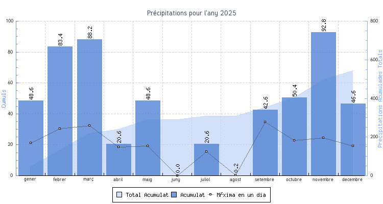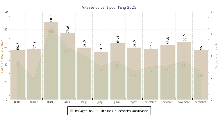 | gener | 6.2 °C | 9.8 °C | 24.8 °C | 16.5 °C | 12.9 °C | 3.6 km/h | 56.3 km/h | SE |
