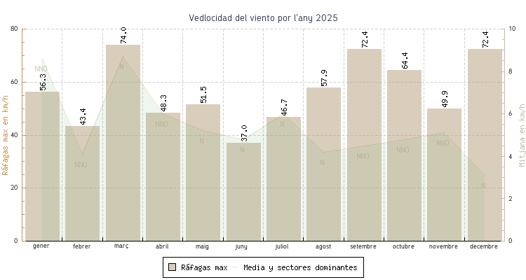 | gener | 3.0 °C | 7.6 °C | 21.3 °C | 16.9 °C | 12.0 °C | 8.6 km/h | 56.3 km/h | NNO |