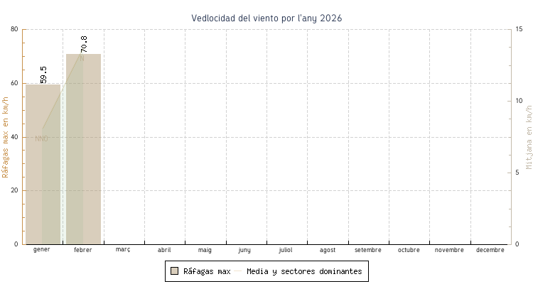 | gener | -1.2 °C | 5.9 °C | 18.3 °C | 15.3 °C | 10.4 °C | 8.1 km/h | 59.5 km/h | NNO |