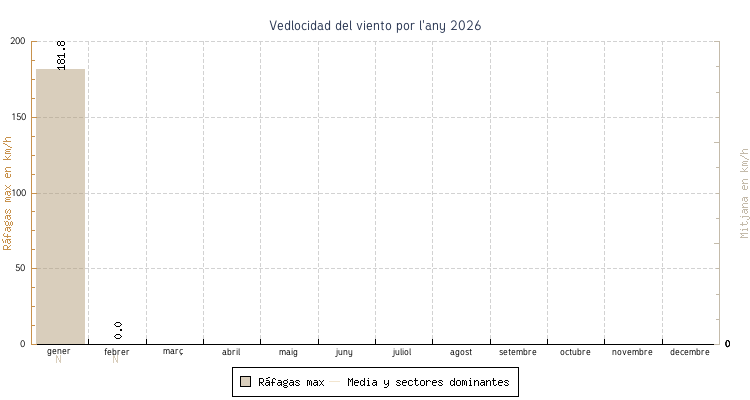 | febrer | 8.8 °C | 11.8 °C | 19.5 °C | 15.5 °C | 13.8 °C | 0.0 km/h | 0.0 km/h | N |