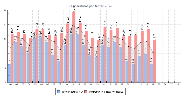 | 24 | 8.9 °C | 13.7 °C | 11.2 °C | 0.0 km/h (0.0 km/h) | N |