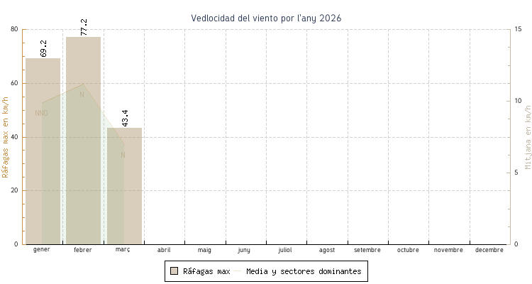 | gener | -2.0 °C | 5.3 °C | 18.9 °C | 15.0 °C | 10.0 °C | 9.9 km/h | 69.2 km/h | NNO |