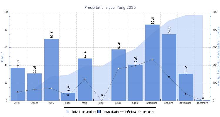 | setembre | 9.6 °C | 15.6 °C | 36.2 °C | 29.2 °C | 22.0 °C | 0.0 km/h | 0.0 km/h | N |