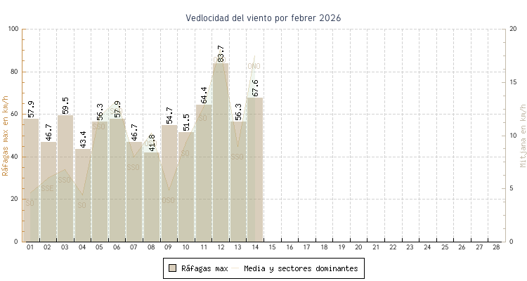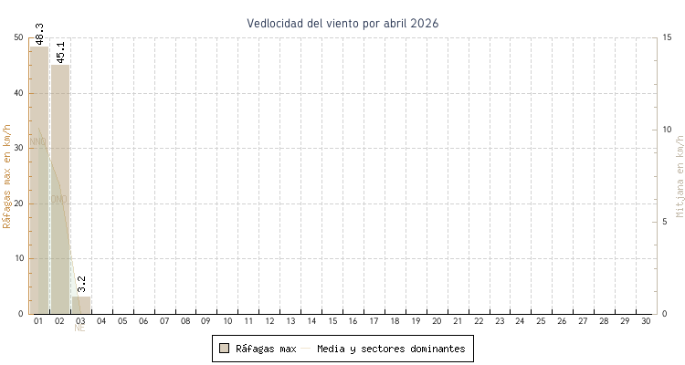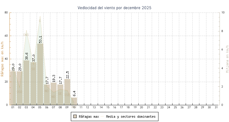 | min | max | mitjana | Velocitat (rafages) | Sector | ||