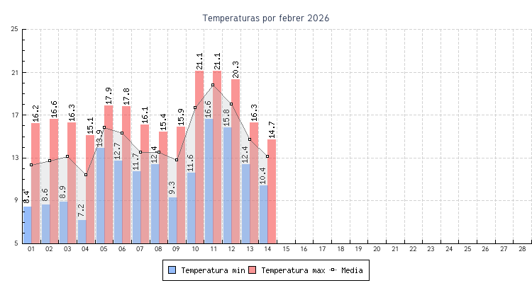 | 03 | 8.9 °C | 16.3 °C | 13.1 °C | 6.8 km/h (59.5 km/h) | SSO |